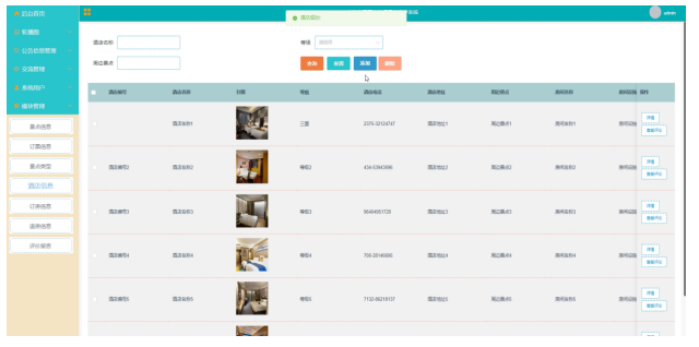 酒店信息管理:对酒店信息进行分类维护,添加、删除、修改信息。