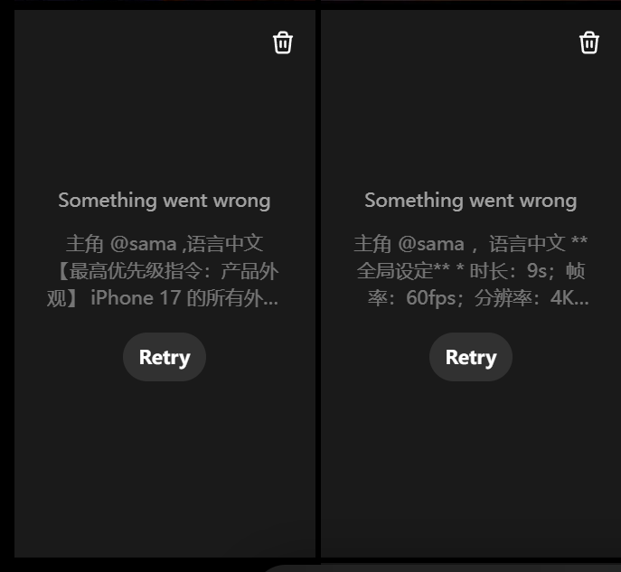 4.出现视频生成不成功的样例,暂不确定是提示词指令较为复杂还是服务不太稳定