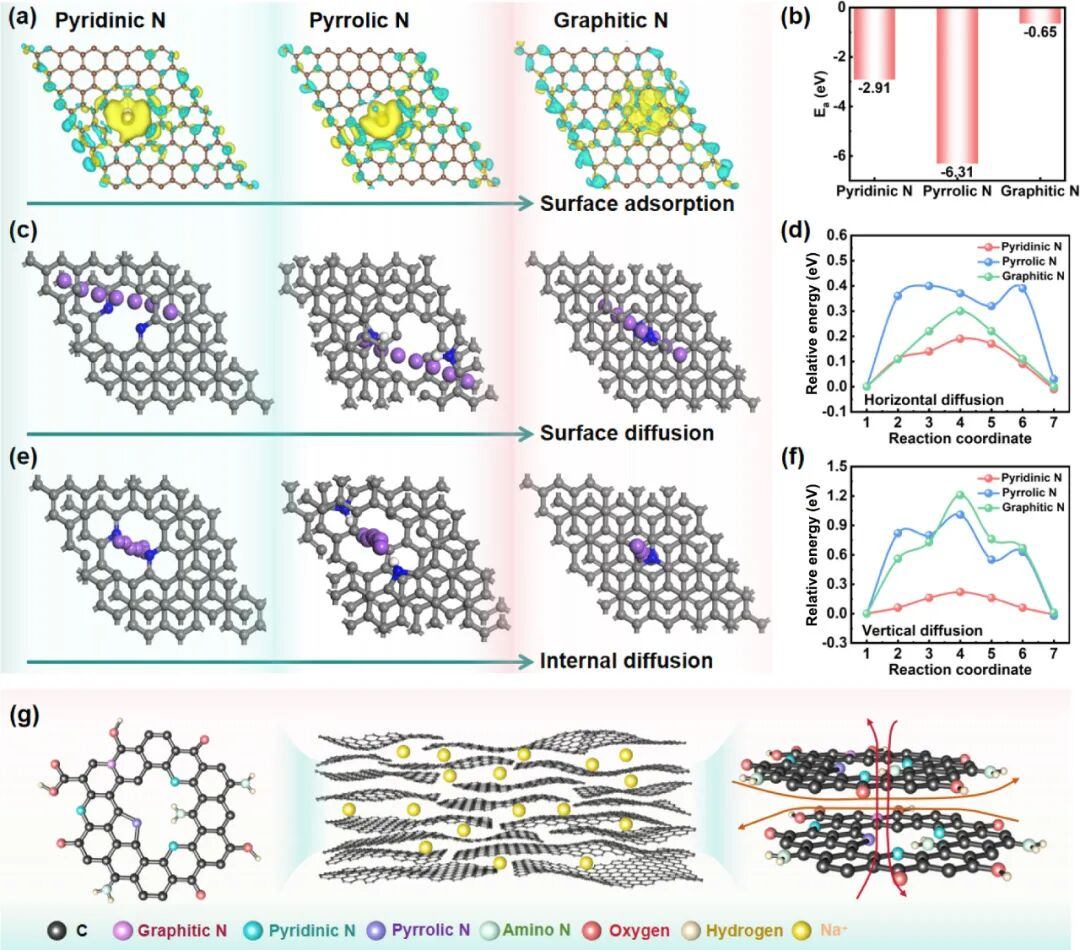 理论计算模拟:通过DFT计算,从原子和电子层面理解了氮物种的作用和钠离子的传输行为,指导了材料设计。