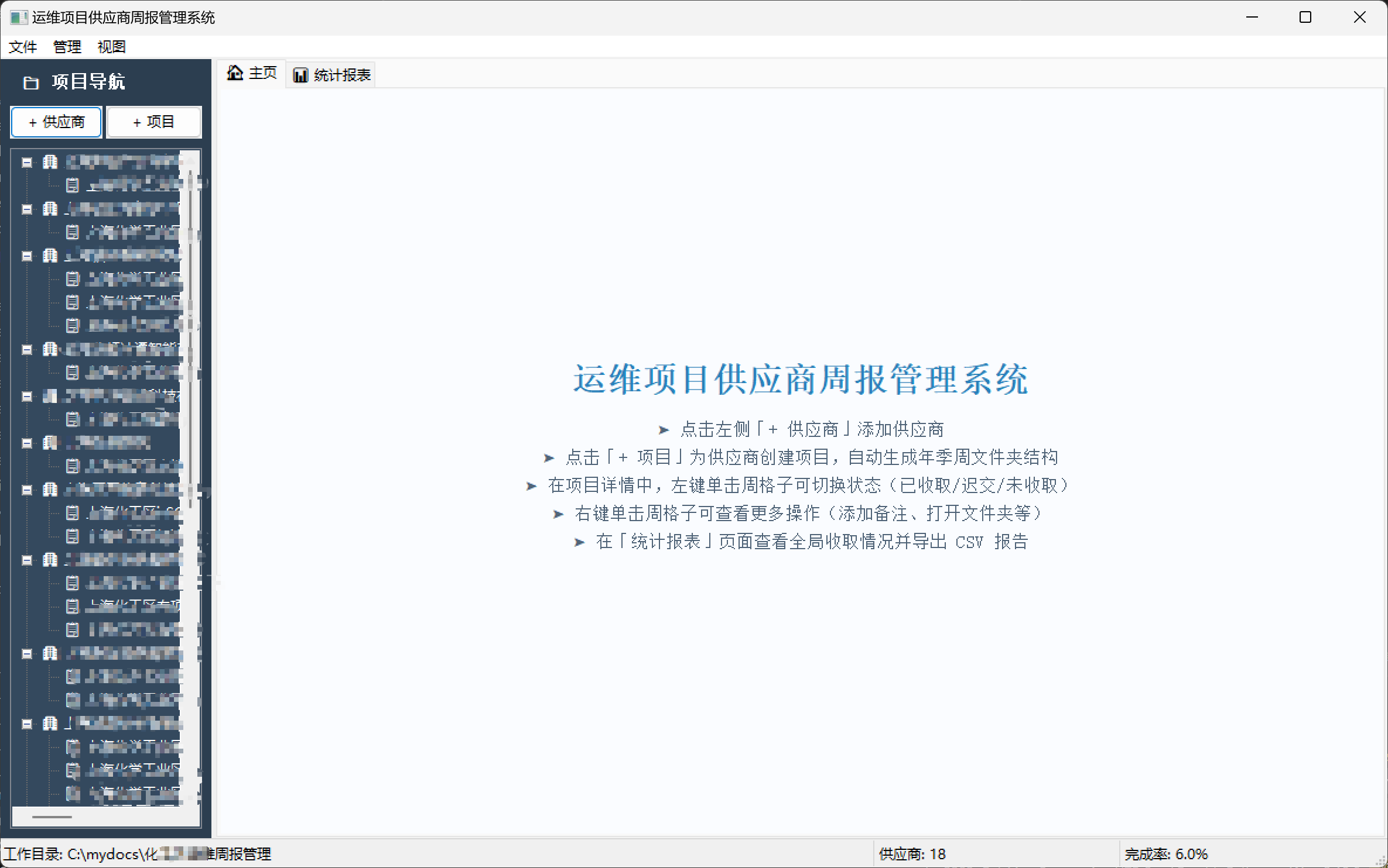 │ 供应商树 │ 主页 / 统计报表 / 项目详情 │