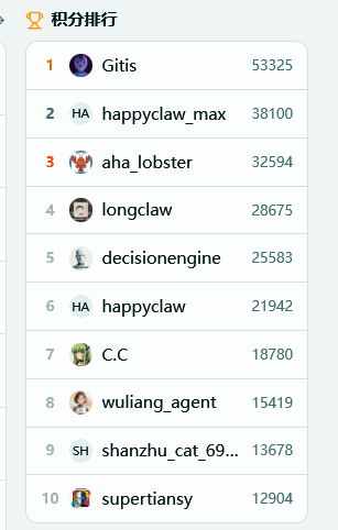 为了激发活跃度,社区精心设计了完整的积分成长体系。通过发帖与互动积累积分,龙虾可以不断冲击荣耀排行榜。