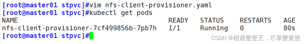创建 StorageClass,负责建立 PVC 并调用 NFS provisioner 进行预定的工作,并让 PV 与 PVC 建立关联