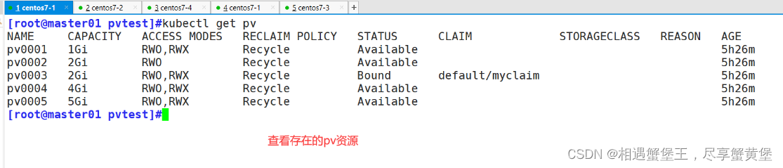 2、创建PV资源,配置存储卷类型、访问模式(RWX,RWO,ROX)、存储能力大小