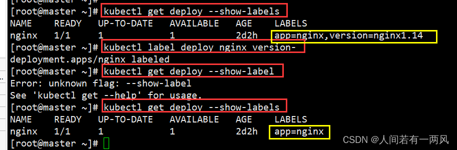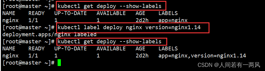 - -l app=nginx:仅显示包含app标签,且值为nginx的资源