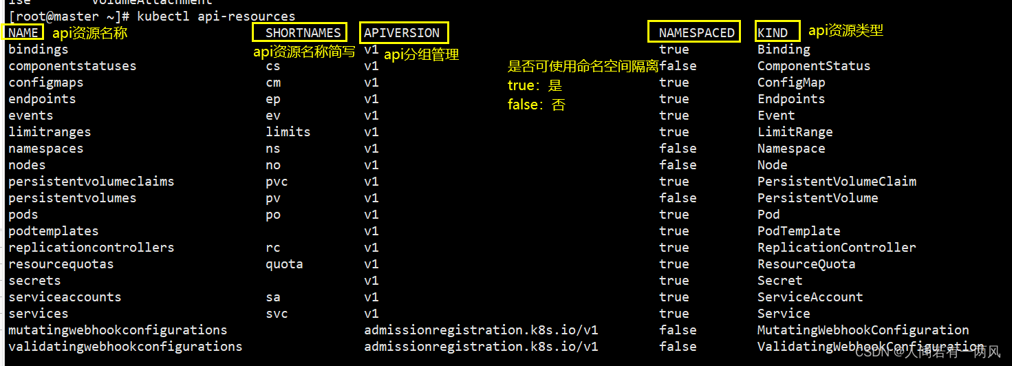 - NAMESPACED :是否可使用命名空间隔离,true 是, false 否;
