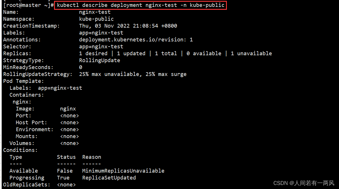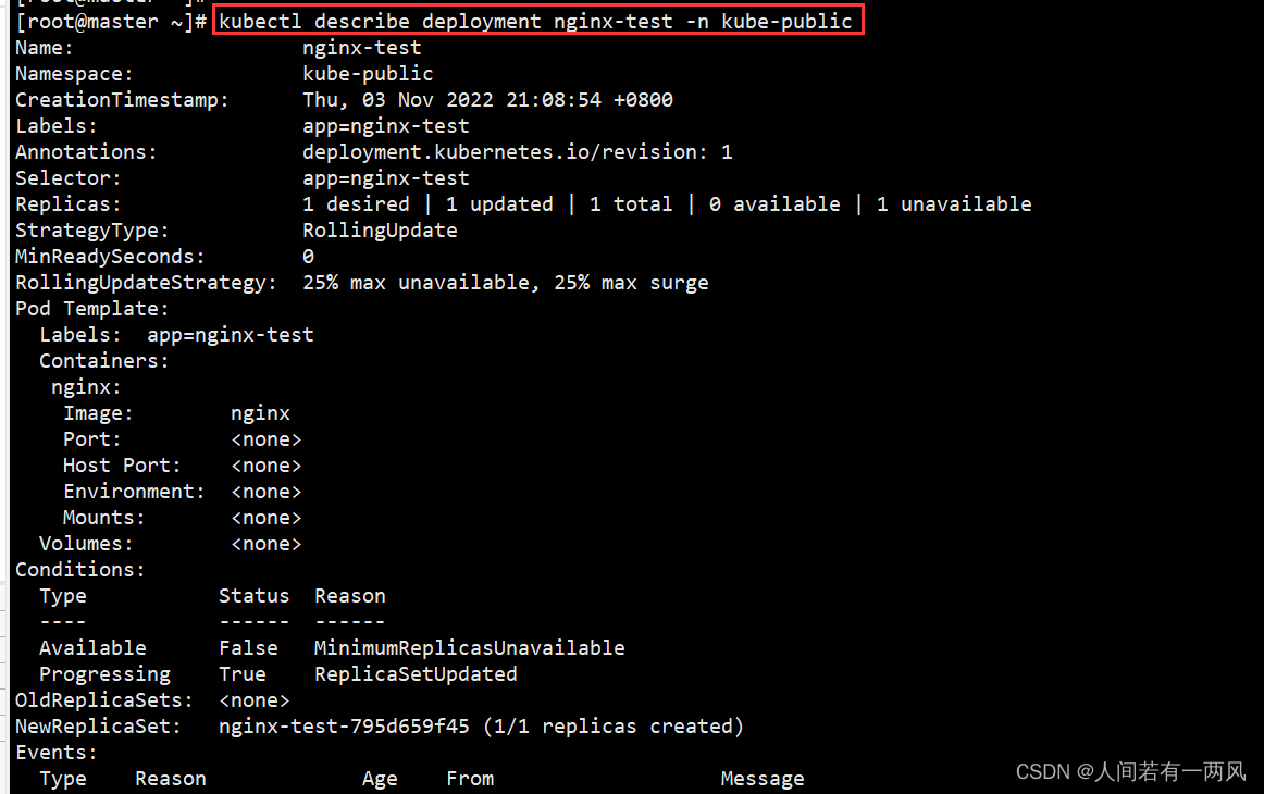 ####2.9.1 在命名空间kube-public创建副本控制器(deployment)来启动Pod(nginx-test)