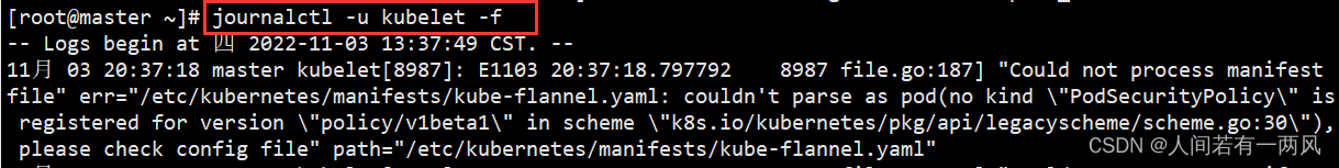 kubectl logs kube-apiserver-master(组件名) -n kube-system