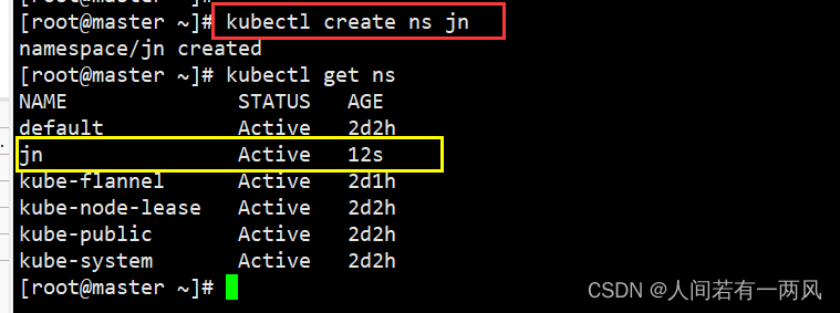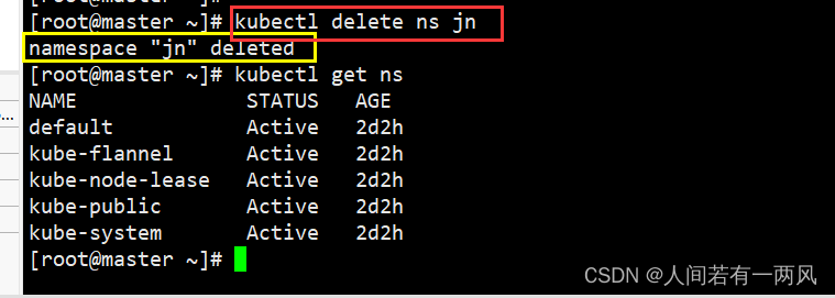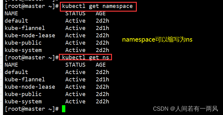 由于deafult为缺省空间,当不指定命名空间时默认查看default命名空间