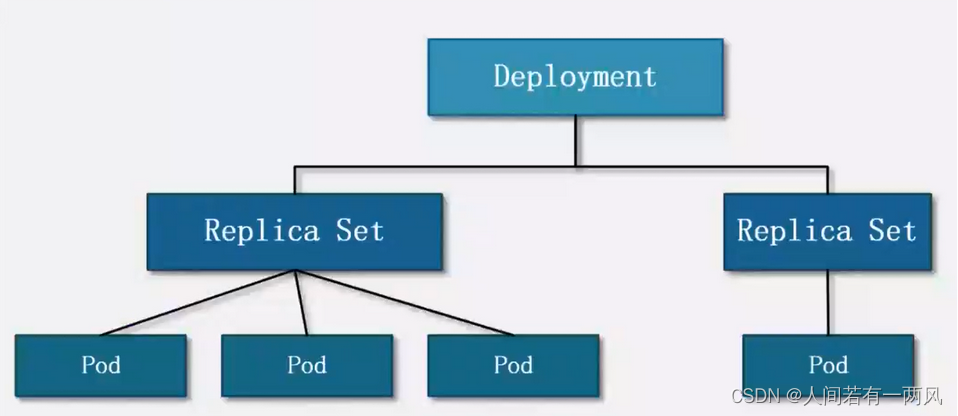- Deployment:无状态应用部署。Deployment 的作用就是管理和控制 Pod 和ReplicaSet,管控它们运行在用户期望的状态中。