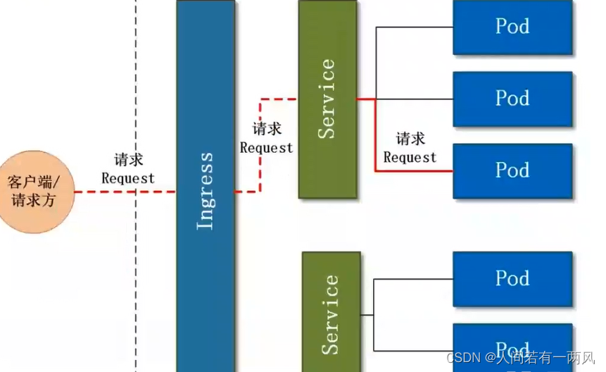 - 比如:客户端请求 http://www.test.com:port --> Ingress --> Service --> Pod