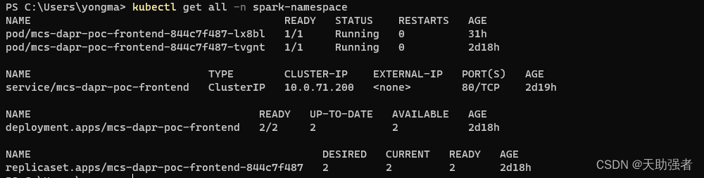 4. 执行命令进行部署,我这里namespace 换了一个名字 spark-namespace 。