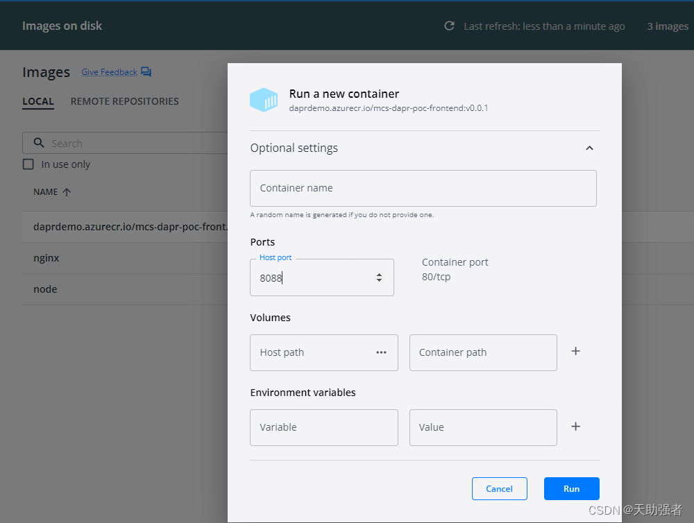 docker run --name frontend -p 8088:80 daprdemo.azurecr.io/mcs-dapr-poc-frontend:v0.0.1