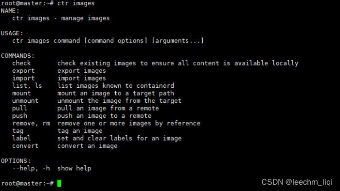 但是ctr命令不怎么友好,对于从docker切换过来的人来说,我们可以看一下ctr的help就知道了