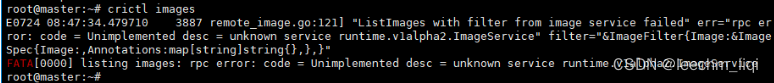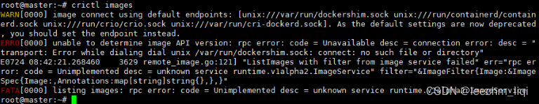 第一次使用crictl images会报错如下,是因为没有连接到我们的某个container runtime工具作为sock通信,这里我们使用的是containerd,因此要配置成这个