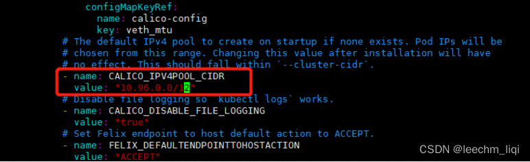 注意第二点即可,我们init的时候,指定的网段是10.96.0.0/12,所以calico.yaml如下修改,然后apply即可