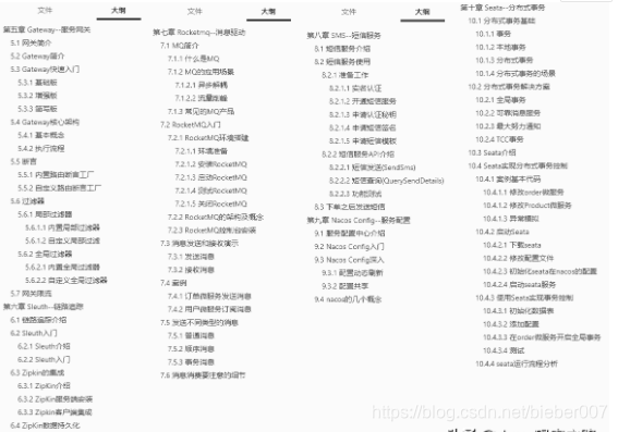 今天狗哥给大家整理收集了阿里第二代微服务框架Spring CloudAlibaba,K8S,jenkens等学习笔记及脑图笔记,希望对还在学习微服务架构的小伙伴有所帮助!由于篇幅原因,本文只展示了目录和内容截图,有需要学习的小伙伴只需转发后后添加小编的vx:mxzFAFAFA即可获取免费领取方式了!