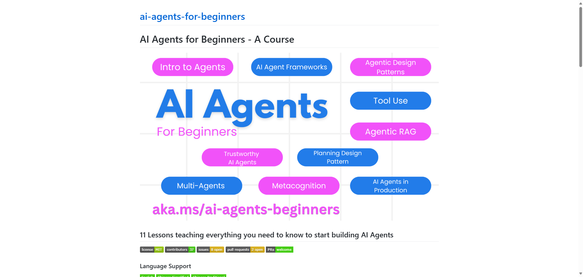 这是一个由微软推出的AI入门课程,专为初学者设计,包含11节课程教你如何构建AI智能体。课程涵盖了AI智能体的基础知识、设计模式、工具使用等内容,并提供Python代码示例和视频教程。支持多种语言,适合想学习AI智能体开发的新手,还推荐了其他相关课程如生成式AI和机器学习等。你可以免费获取代码并参与社区讨论。