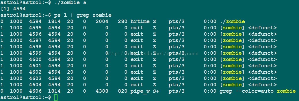 所以一旦出现父进程长期运行,而又没有显示调用wait或者waitpid,同时也没有处理SIGCHLD信号,这个时候init进程就没有办法来替子进程收尸,这个时候,子进程就真的成了“僵尸”了。