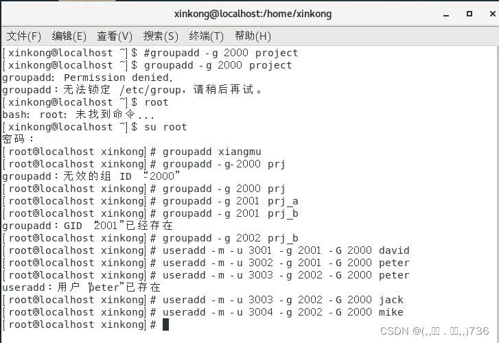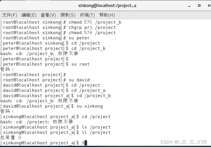 (1) 建立目录“/project_ a”,该目录里面的文件只能由David和Peter两人读取、增加、删除、修改以及执行,其他用户不能对该目录进行任何的访问操作。