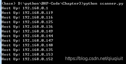上面代码出自《Black Hat Python》,但我是在win7 32的python3上运行的,代码稍微有点改动。运行结果如下“