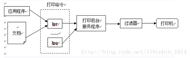 在打印过程中,通常是应用程序产生输出并以管道的方式传送给lpr或者直接应用lpr打印一个文件。lpr与打印机后台服务程序通过网络进行连接并进行通信,传送相应的打印数据和打印选项。打印机后台服务程序将在相应的spooler目录存储打印信息,在输出设备可以利用的情况下将打印任务送给打印设备。
