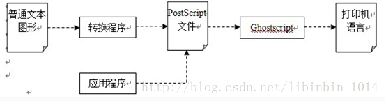 目前大多数Linux系统以下面的流程来实现文档到打印机语言的转换: