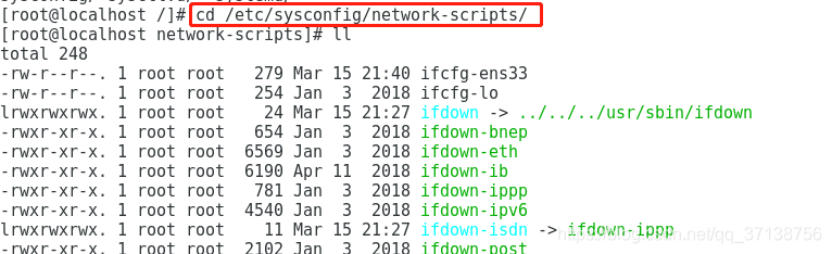 启动虚拟机,通过命令框,输入以下命令,进入网卡所在目录