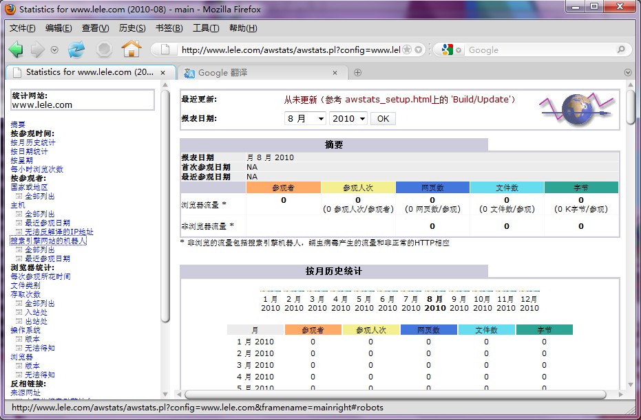 现在用http://www.lele.com/awstats/awstats.pl?config=www.lele.com网址就可以访问了,界面如下显示了