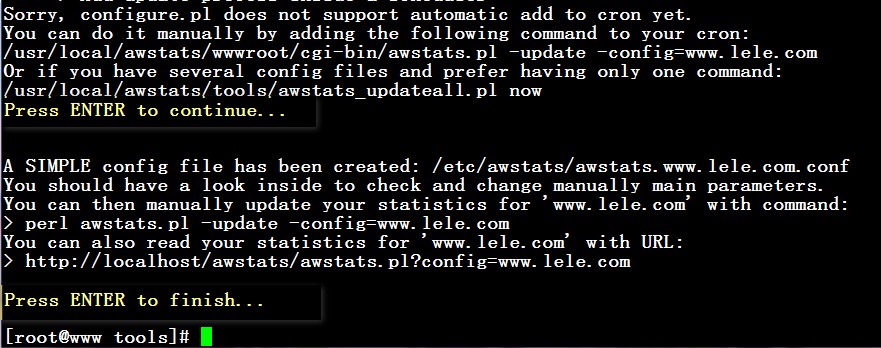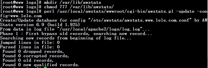 [root@wwwlogs]#perl /usr/local/awstats/wwwroot/cgi-bin/awstats.pl -update -config=www.lele.com