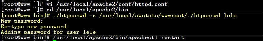[root@www bin]# ./htpasswd -c /usr/local/awstats/wwwroot/./htpasswd lele