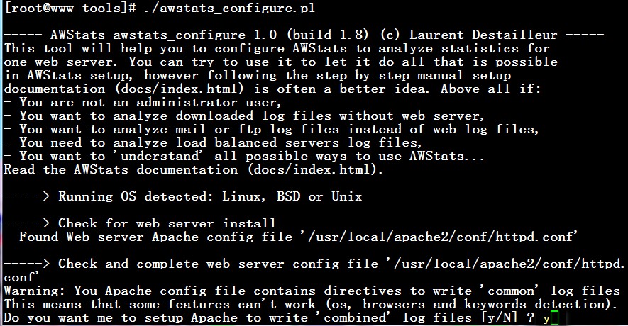 1.解压并释放awstats软件包,执行目录中的 awstats_configure.pl脚本进行安装