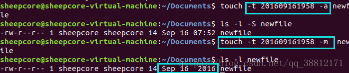 -m 改变文件的修改时间(改成默认当前系统时间)