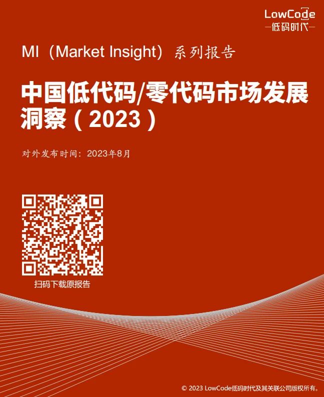 在《Market Insight:中国低代码市场发展洞察(2023)》的研究中,分析师从企业客户需求和实际应用的角度进行了精细化的市场调研。通过大量的数据和案例研究,LowCode低码时代对行业发展现状与趋势、客户需求和技术洞察、各领域实际应用、供应商能力等进行了深入研究和分析。