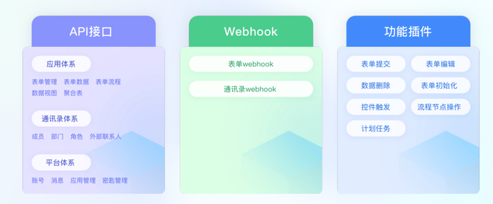 百数开放平台是基于产品内的API接口为企业提供开发能力,让企业可以通过自主开发或者使用官方第三方服务商等开发的功能来实现企业个性化需求。