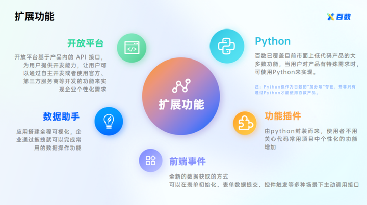 传统软件以传统代码为封装,如果需要进行扩展与改动非常难,不仅需要花费金钱与精力,还需要非常专业的技术人员才能进行改动,使用上是非常不方便。而采用低代码品牌厂商搭建的本地部署可以解决功能性问题,例如:百数本地化部署以低代码与Python作为封装工具进行增删改扩展,既适用于专业人员也适用于非专业人员。
