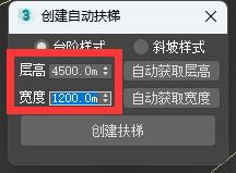 2. 打开3DMAX创建自动扶梯插件,按下“自动获取层高”和“自动获取宽度”按钮,如图: