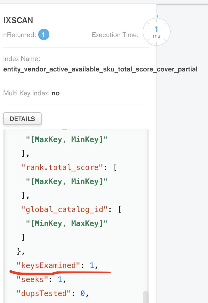 However, as with everything else, it’s not as simple as it looks, especially regarding complex queries and compound indexes (indexes that span across multiple fields). You can encounter queries that use index, but performance is still poor, and the scanned keys-documents/returned objects are still high. It looks complicated, but if we think it over a little bit, everything has its reason. For example,