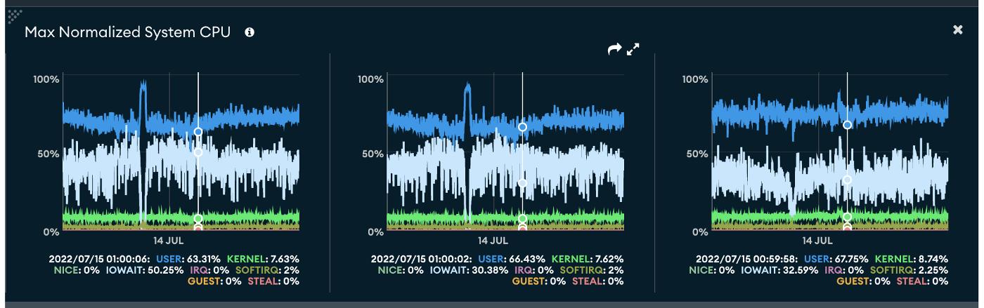 CPU is used in every operation. Usually, it’s a main metric for DB monitoring and the most descriptive one. Inside every database, there will be computational work performed. Whether we perform index scans, read data from disk, or do writes there. However, its usage heavily depends on the other two pillars, and optimising memory and disk usage can significantly affect CPU usage. Below, we’ll explain why we should address CPU usage last in the chain.