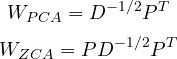 We can now compute our transformation matrices, one for PCA-whitening and one for ZCA-whitening, using the formulas from above :