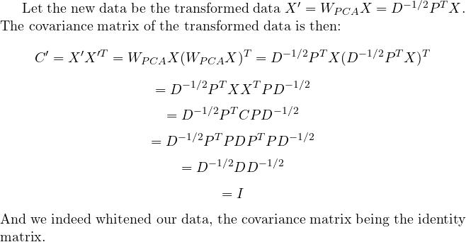 We can then use D and P to whiten our data matrix X, using the linear transformation :