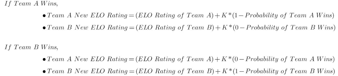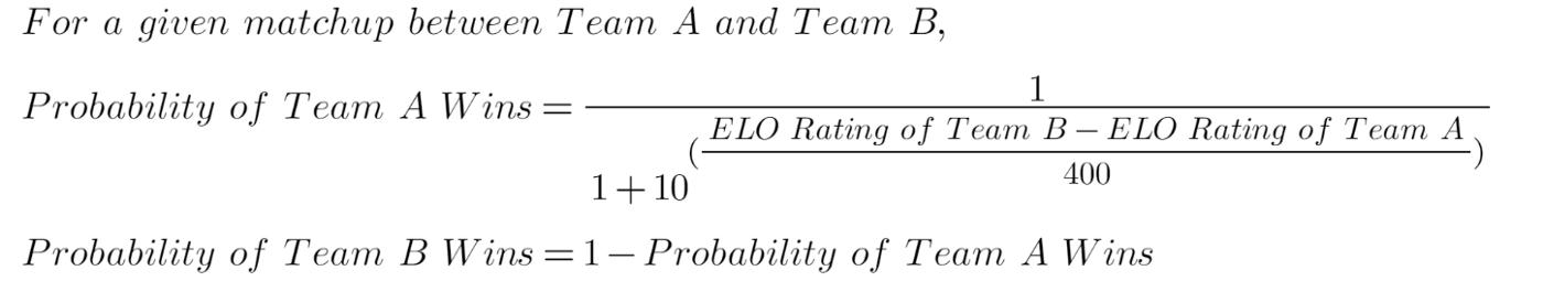 例如,对于 2 支 NBA 球队 A 和 B 之间的比赛,每支球队在比赛开始前都会有一个 ELO 等级。基于此,确定每支球队的获胜概率。如果 A 队获胜,其 ELO 等级会增加一定数量,而 B 队的 ELO 等级会降低相同数量。这就是为什么它是一个零和评级系统。