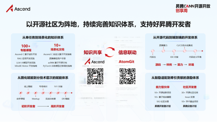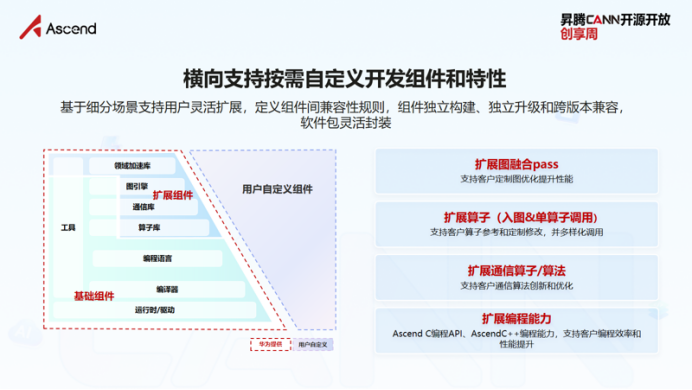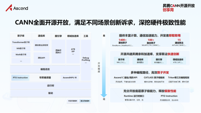 随着昇腾硬件平台不断演进,CANN 将保障“上市即开源”的节奏,让匹配新硬件的能力第一时间进入社区视野,避免软硬件割裂带来的生态断层。在软件侧,通过持续丰富算子库、完善编程接口,协同主流开源社区,逐步降低国产算力的使用与迁移门槛。