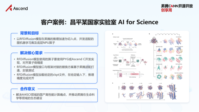 在昌平实验室的IL-Diffusion蛋白质结构预测项目中,科研人员依赖DGL(Deep Graph Library)图学习库,而该库在昇腾上的原生支持并不完美。向昊团队没有选择漫长的等待,而是基于Ascend C快速重写了关键的hsoftmax算子,以点带面地打通了科研落地的堵点。