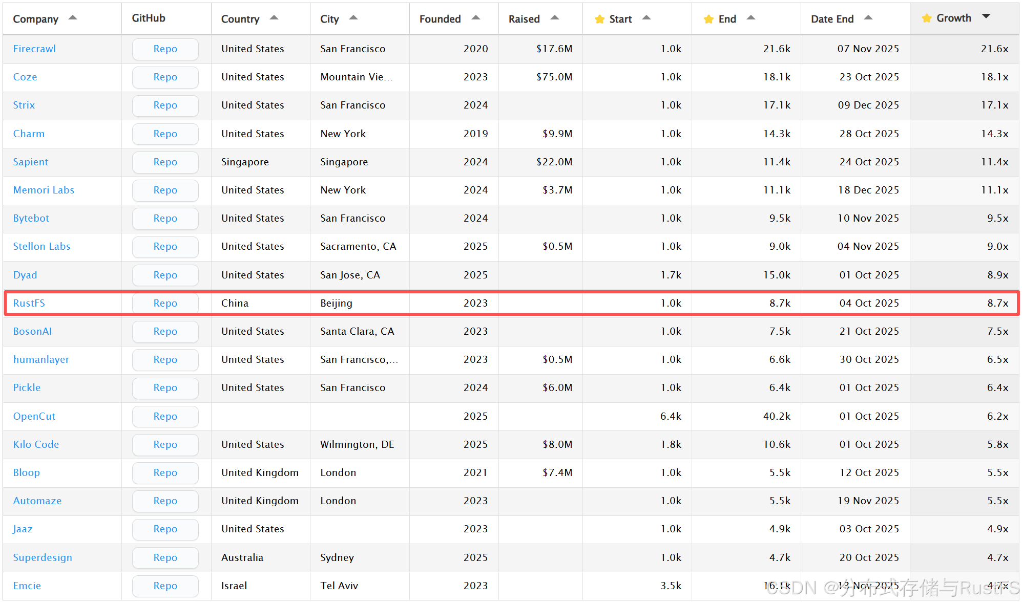 | 发展阶段 | 公司成立时间短(<10年),融资额有限(<1亿美元),处于爆发前夜。 | 项目于2024年创立,2025年7月方才正式开源,正处于高速成长期。 |