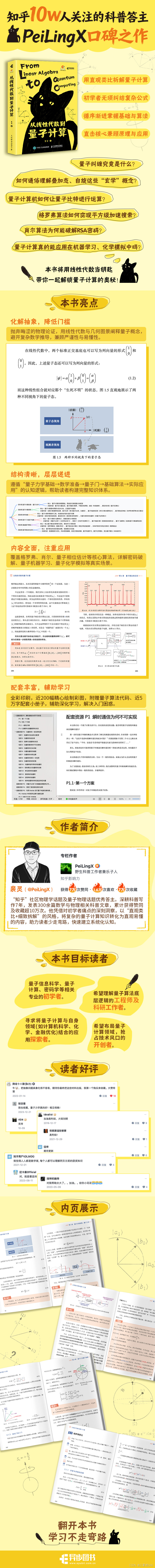 接下来给大家推荐一本关于量子计算的书籍,这是一本衔接线性代数与量子计算核心知识的干货图书,一经上市就登上了当当“计算机与互联网”图书排行榜前列。本书从线性代数基础铺垫讲起到量子计算核心原理与实践应用,助读者搭建从基础数学到前沿量子计算的知识桥梁,轻松踏入量子计算领域!另外,关注本文博主,点赞+收藏本文,且在本文评论区评论“入手量子计算”,将选取三名幸运读者送出纸质版《从线性代数到量子计算》一本,截止时间:2026.03.01。入手《从线性代数到量子计算》传送门:https://item.jd.com/15293098.html 或者 https://product.dangdang.com/30003047.html ,个人觉得这本书非常的不错,是一本不可多得的量子计算入门进阶好书,值得每一位对量子计算感兴趣的读者拥有去深入学习。