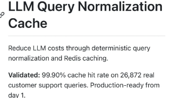 constraint-cache是一个Python库,解决了本地大模型重复查询效率低的问题。它通过确定性规范化算法,将语义相似的查询转换为统一的缓存键,提取查询中的实体和动作,组合成标准化意图标识符。测试显示该工具能达到99.9%的缓存命中率,降低99.9%成本,响应时间从几秒缩短至1毫秒。基于Redis标准缓存实现,开源代码已发布,特别适合客服机器人、知识库问答等场景,且保证相同查询总是得到相同