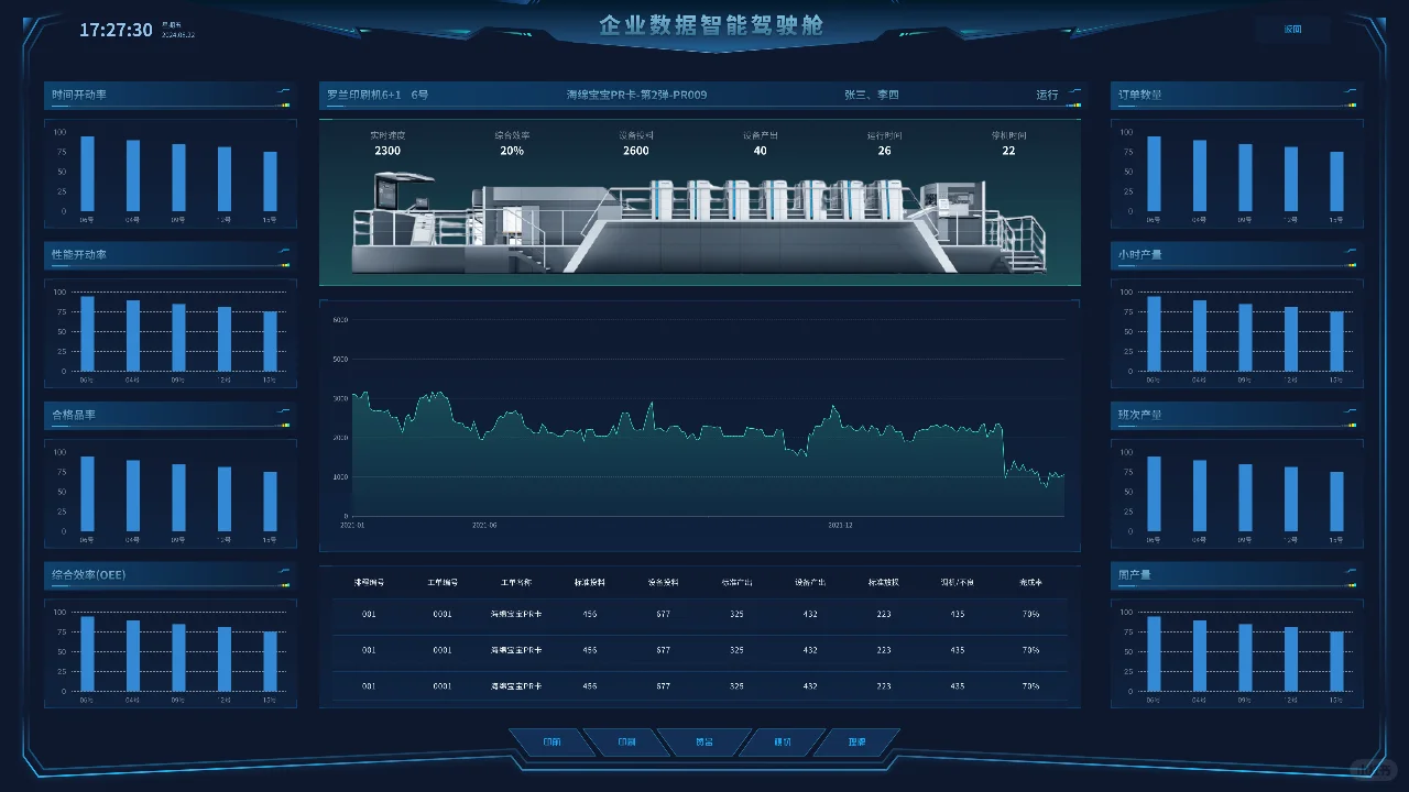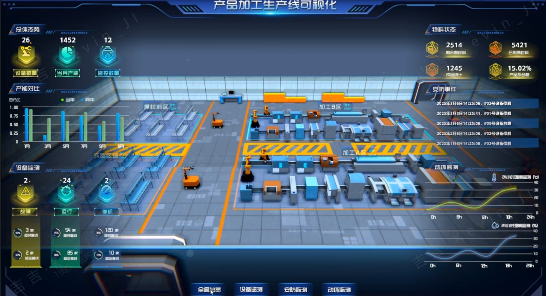 如果说PLC是“大脑”,那监控大屏就是“大脑的仪表盘”——它把PLC收集到的设备数据,用图表、数字、指示灯等直观方式展示出来,让工人和管理人员能一眼看清生产状态。比如: