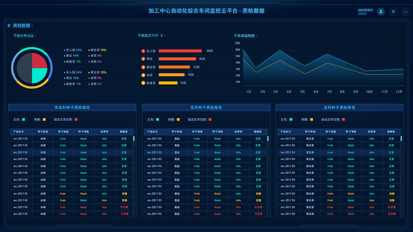 最后一步,是把收到的JSON数据,变成工人能快速理解的“可视化画面”——这就是大屏的“渲染”工作。现在主流的大屏开发工具(比如DataV、ECharts),都能轻松实现: