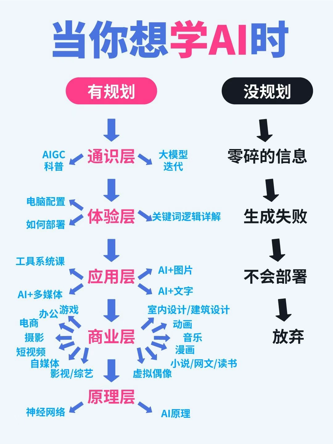 无论您是希望将AIGC作为职业发展方向,还是仅仅作为提升效率的工具,这条学习路径都能为您提供清晰的指引。