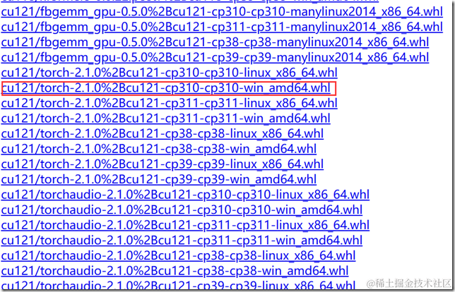 支持 cuda 12.1,python3.10 的,win版的是这个: